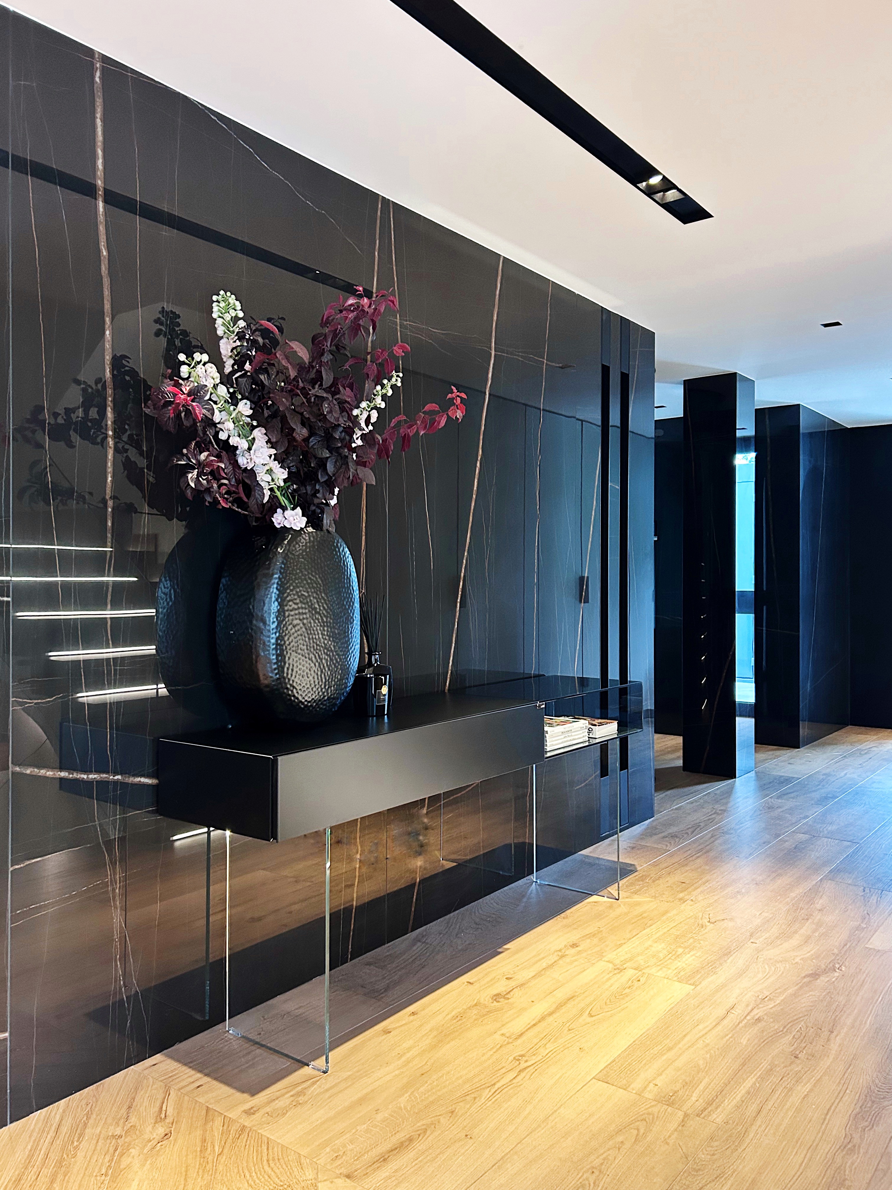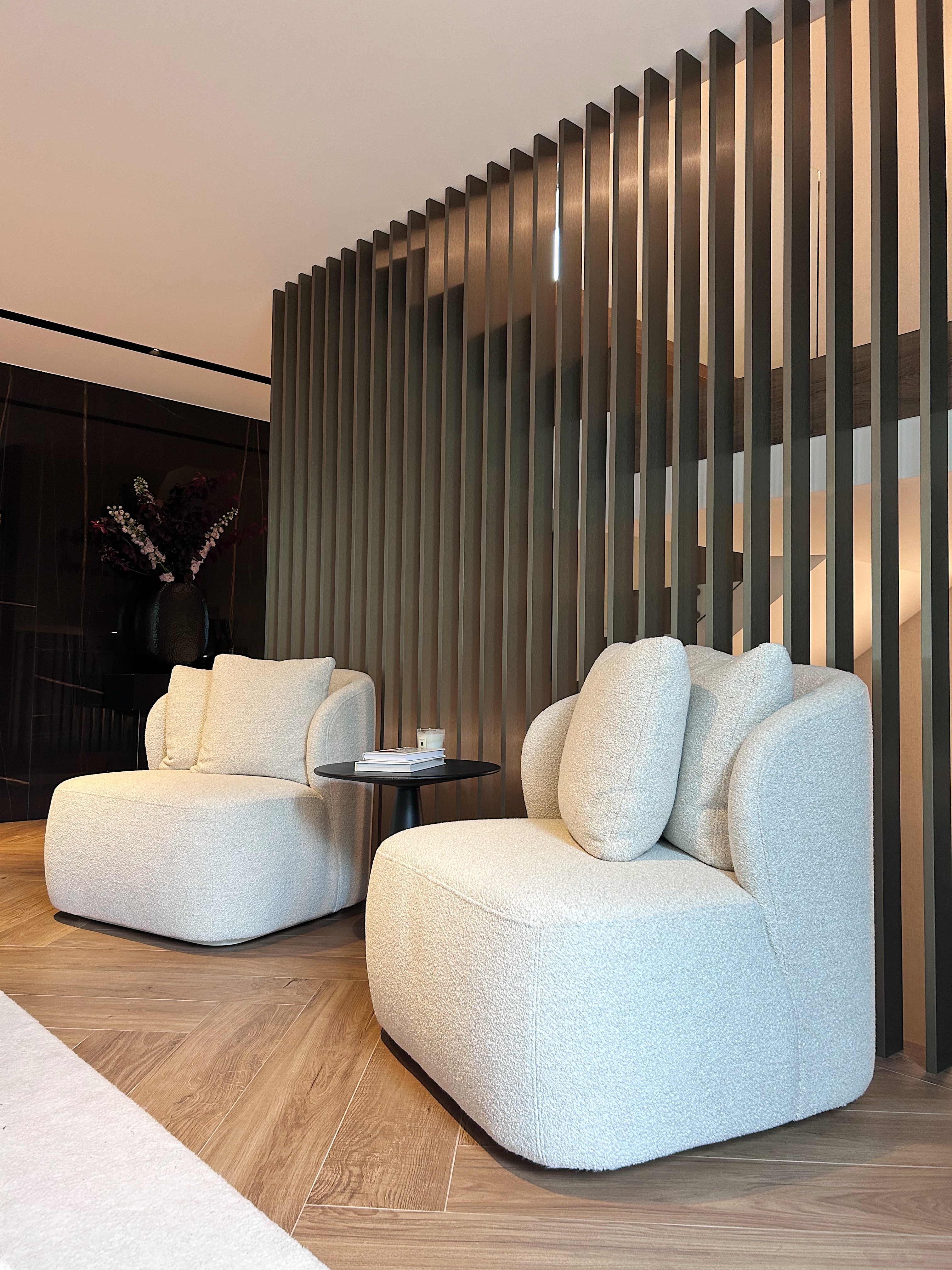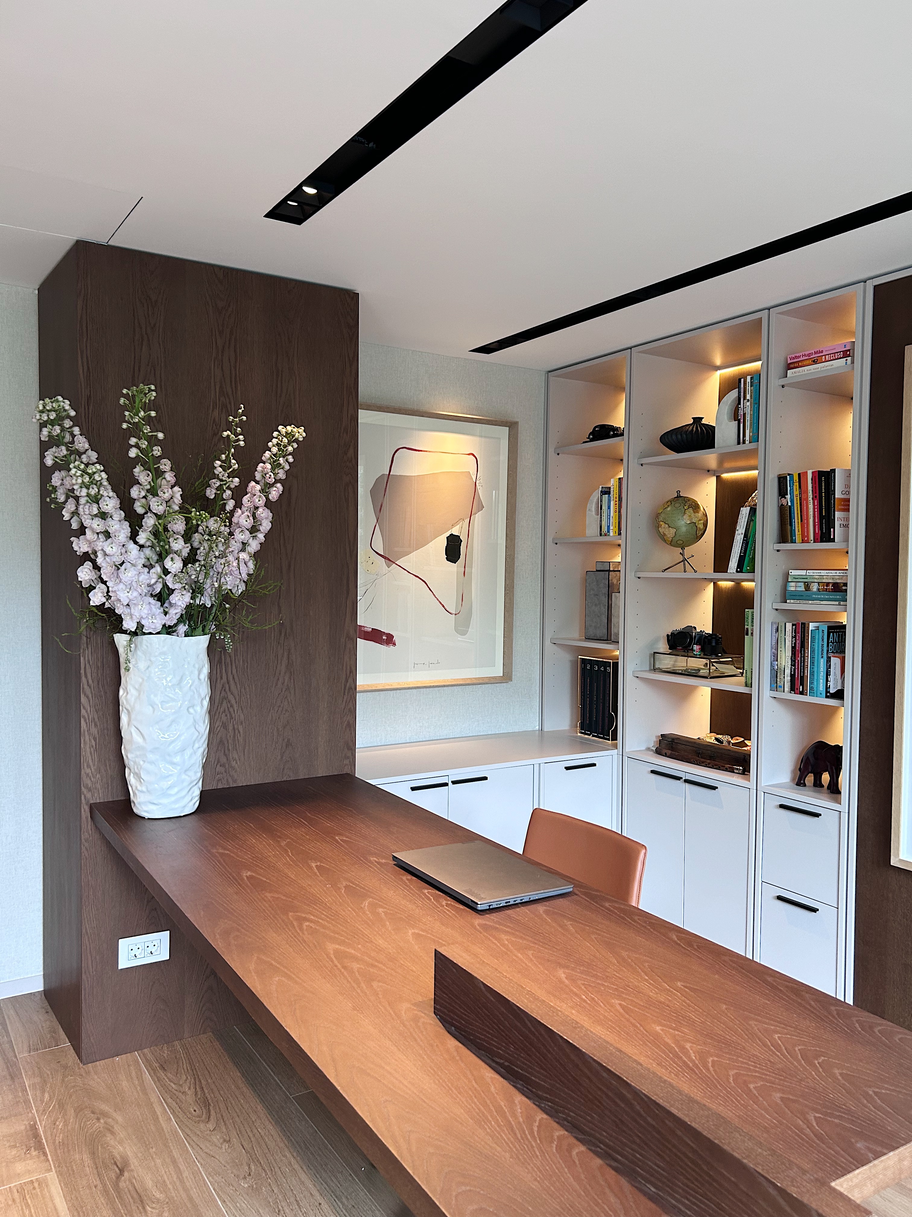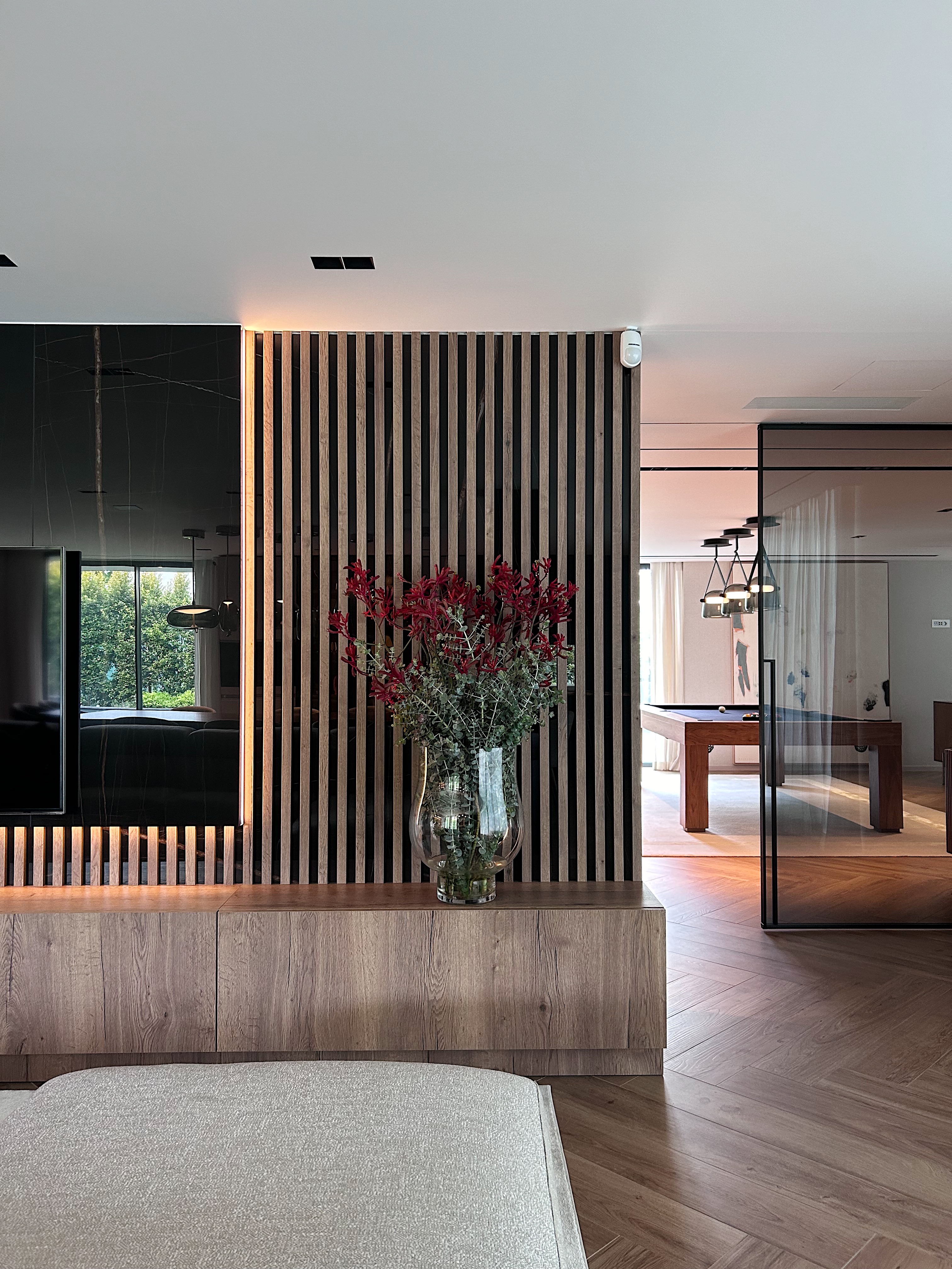 Este projeto residencial foi pensado para oferecer o equilíbrio perfeito entre conforto, funcionalidade e elegância. Os interiores revelam uma estética actual, com um design que privilegia linhas simples, materiais de elevada qualidade e uma paleta de cores sóbria e discreta. Os espaços são amplos e acolhedores, com especial atenção aos detalhes decorativos que lhes conferem um toque personalizado e único. A integração harmoniosa de elementos naturais, como a madeira e a pedra, cria um equilíbrio entre tradição e modernidade. A iluminação foi cuidadosamente estudada para valorizar texturas e materiais, resultando em ambientes convidativos e ajustados às necessidades da família. As zonas sociais promovem a convivência natural, através de áreas interligadas que favorecem a funcionalidade e o bem-estar. A cozinha, de desenho elegante, foi concebida como um espaço que combina praticidade e momentos de partilha. A sala, cheia de personalidade e marcada por peças de design, alia conforto a uma linguagem contemporânea. A seleção criteriosa do mobiliário e dos objetos decorativos reforça a ideia de um lar único, onde cada detalhe reflete a identidade e o estilo de vida dos seus habitantes. Trata-se de um projeto que ultrapassa tendências, oferecendo um refúgio moderno e acolhedor para a vida em família.